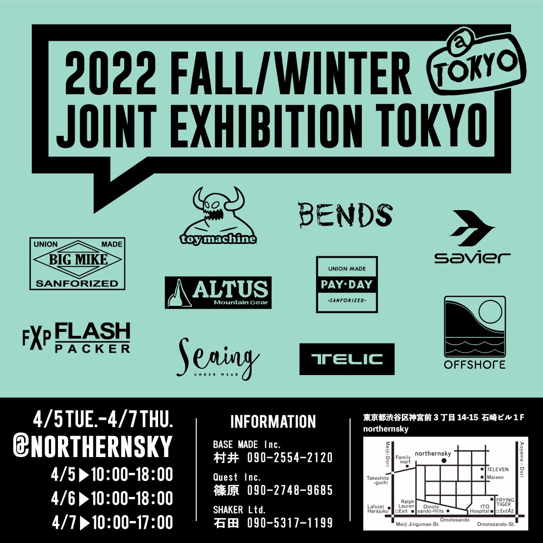 >4月5日~4月7日に 原宿NORTHERNSKYにて開催される、 2022FALL/WINTER JOINT EXHIBITION TOKYO に出展します。ご来展をお待ちしております。